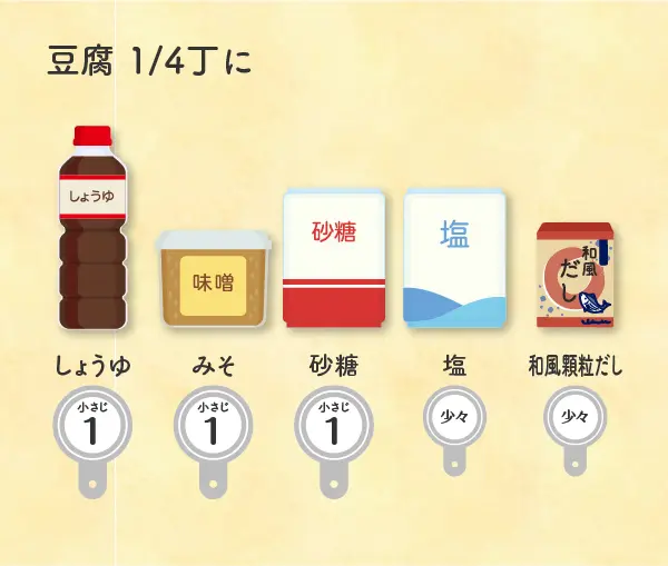 白和えの味付け 2025.10.15 和風 基本豆腐野菜 1人分2人分3人分4人分 ・しょうゆ…小さじ1・みそ…小さじ1・砂糖…小さじ1・塩…少々・和風顆粒だし…少々 ・しょうゆ…小さじ2・みそ…小さじ2・砂糖…小さじ2・塩…一つまみ・和風顆粒だし…一つまみ ・しょうゆ…大さじ1・みそ…大さじ1・砂糖…大さじ1・塩…少々×3・和風顆粒だし…少々×3 ・しょうゆ…大さじ1と1/3・みそ…小さじ4・砂糖…小さじ4・塩…二つまみ・和風顆粒だし…二つまみ